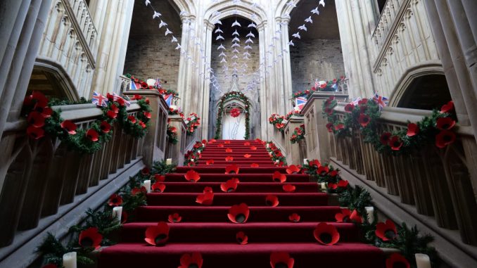 Inside Margam Castle, visitors will find the Entrance Hall beautifully decorated with hand-knitted and crocheted red poppies arranged around the fireplace. The staircase hall will feature red poppies, white paper doves and VE Day 80 flags in a display designed to symbolise both remembrance and peace.